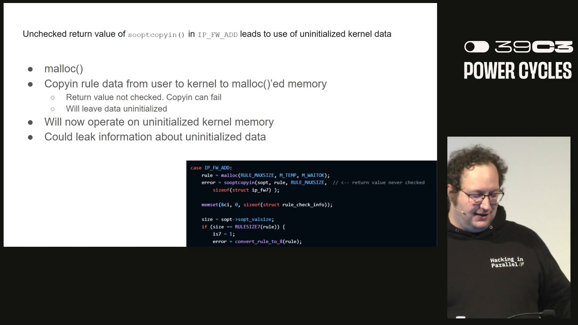 At the 39c3 conference, presenters Ilja and Michael Smith released a security study examining the strength of FreeBSD’s jail isolation. The researchers performed a large-scale audit of kernel code paths reachable from inside a jailed process, focusing on privileged operations, capabilities and interfaces that remain accessible from within a jail. Their review turned up about 50 distinct issues across several kernel subsystems, including buffer overflows, information leaks, unbounded allocations and reference-counting errors. The team developed proof-of-concept exploits and tools to demonstrate some of these weaknesses and showed demos of actual jail escapes during the talk. They say they have disclosed their findings to the FreeBSD security team and are collaborating on fixes. The talk covers their methodology, tooling, selected exploit demonstrations, and broader lessons for operating-system-level container isolation.